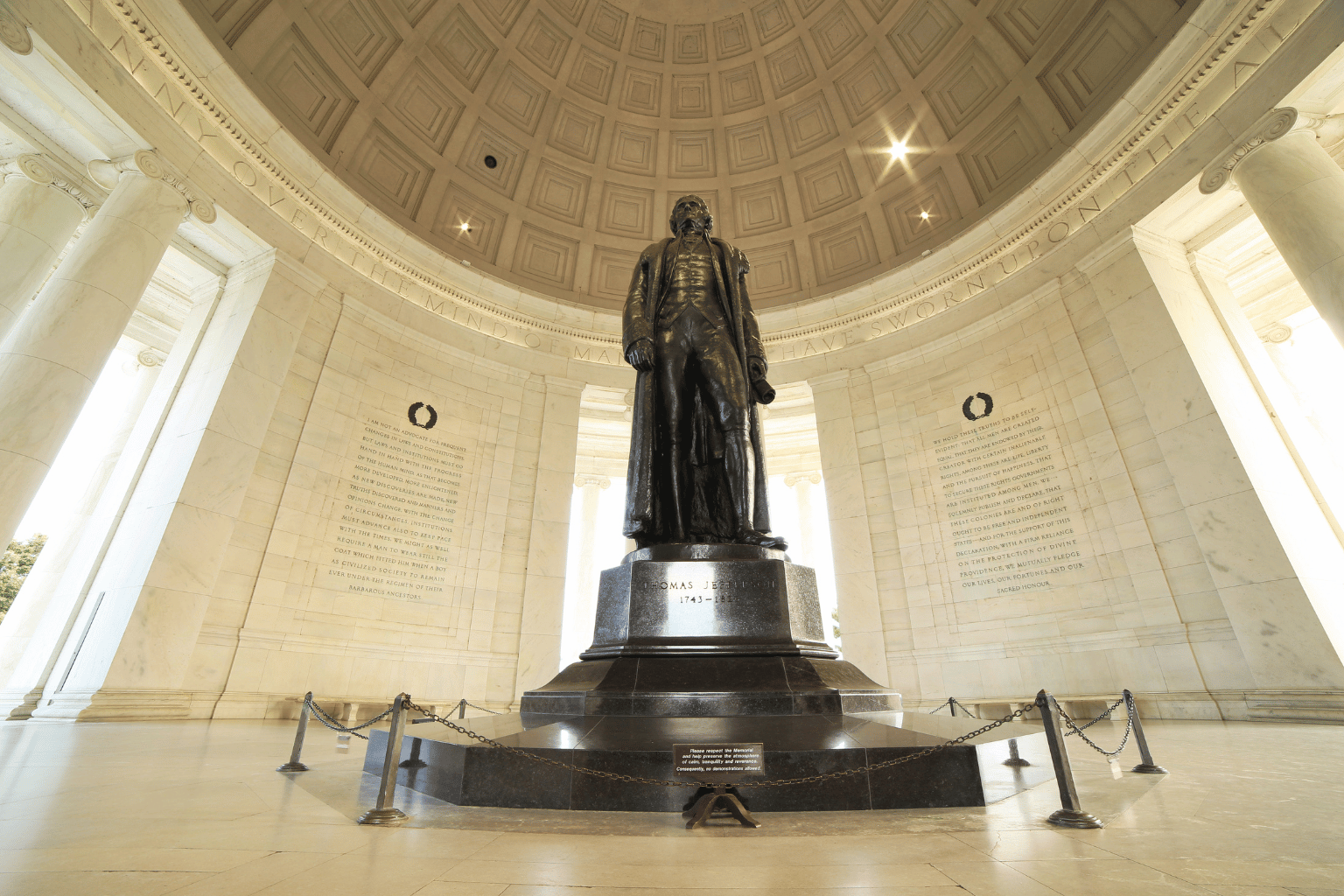 Franklin D. Roosevelt Memorial is one to be experienced rather than merely viewed. Its chambers and plazas located on the Tidal Basin, use touchable inscriptions, statues, and fountains to chronicle how the man and the nation persevered through the trials of the Great Depression and World War II.